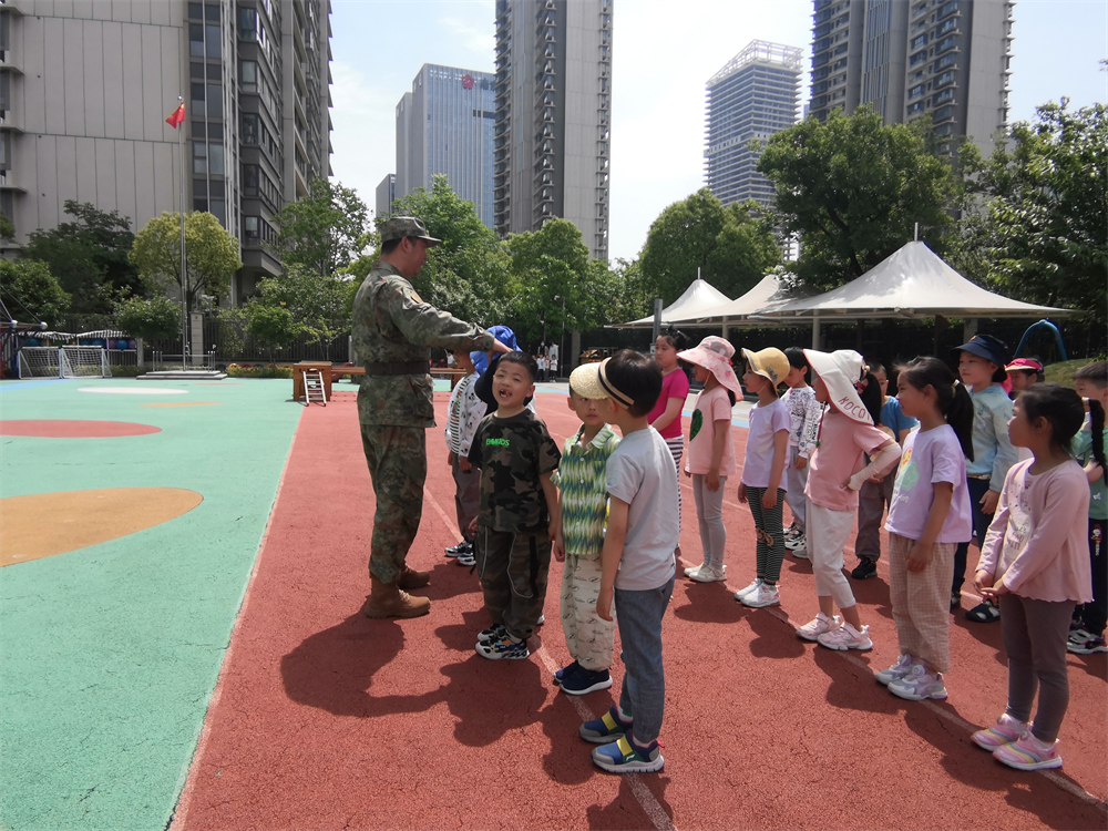 “飒爽英姿五尺枪,曙光初照演兵场。中华儿女多奇志,不爱红装爱武装。”中国人民解放军是伟大的、崇高的。他们一直以来都是孩子们心中的英雄。为萌发幼儿的爱国主义情怀,培养幼儿不怕苦、不怕累、不怕困难的良好品质,无锡市新城幼儿园大一班迎来了一群特殊的客人,他们身穿绿色迷彩服,迈着铿锵有力的步伐,成为操场上一道亮丽的风景线。