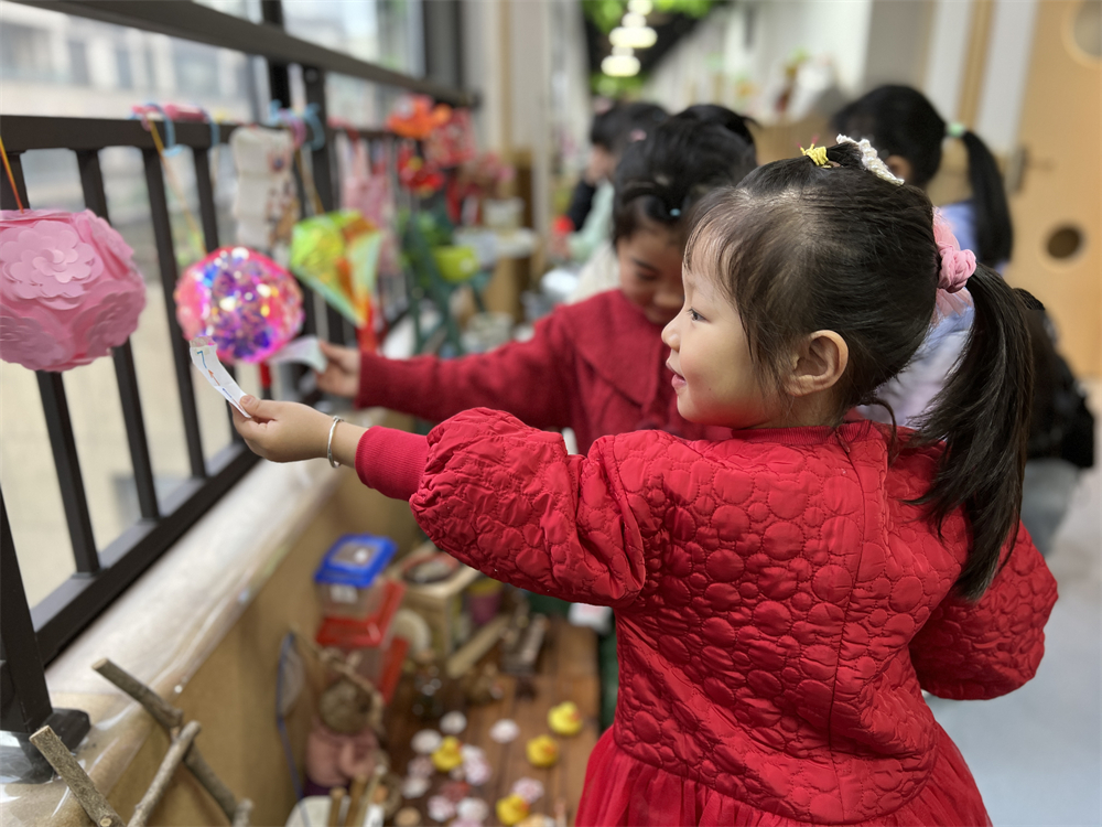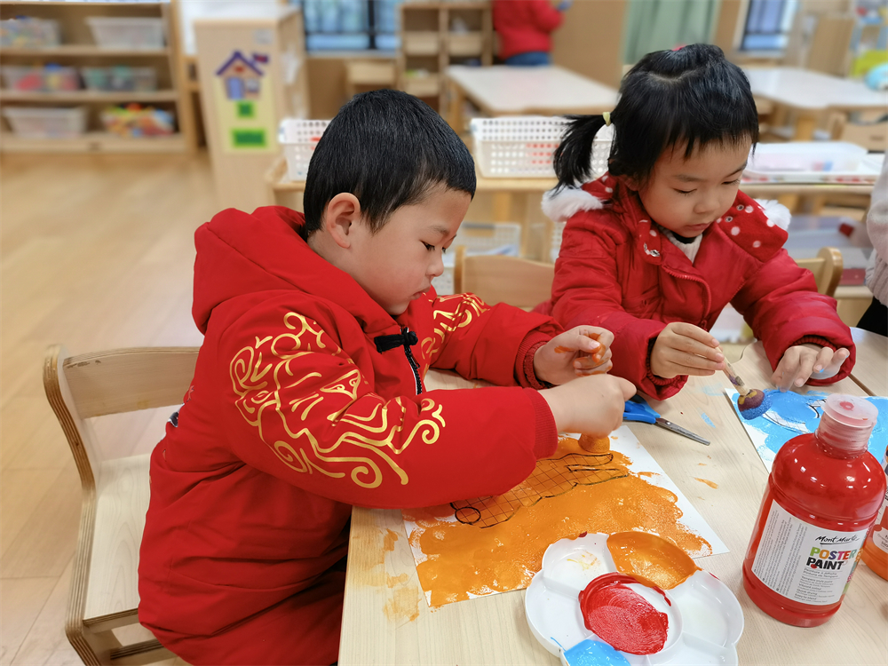 在凤凰幼儿园,小班萌娃们化身才艺兔、勤劳兔、阅读兔、祝福兔,和好朋友互相拜年、分享兔年节日经历。中班孩子们开展了元宵喜乐会,分享元宵节的传统故事、风俗习惯。他们还自己动手“做”、“吃”元宵、做花灯、猜灯谜,用“画、拓印、印染”等不同方式制作福兔、设计“福”字。大班孩子们则进行了一系列充满挑战的活动——跨门槛迎新年、登高望远、大声说出新年愿望、开展足球对抗比赛,用行动表达着对未来的态度,期盼前路平坦,“兔”飞猛进!