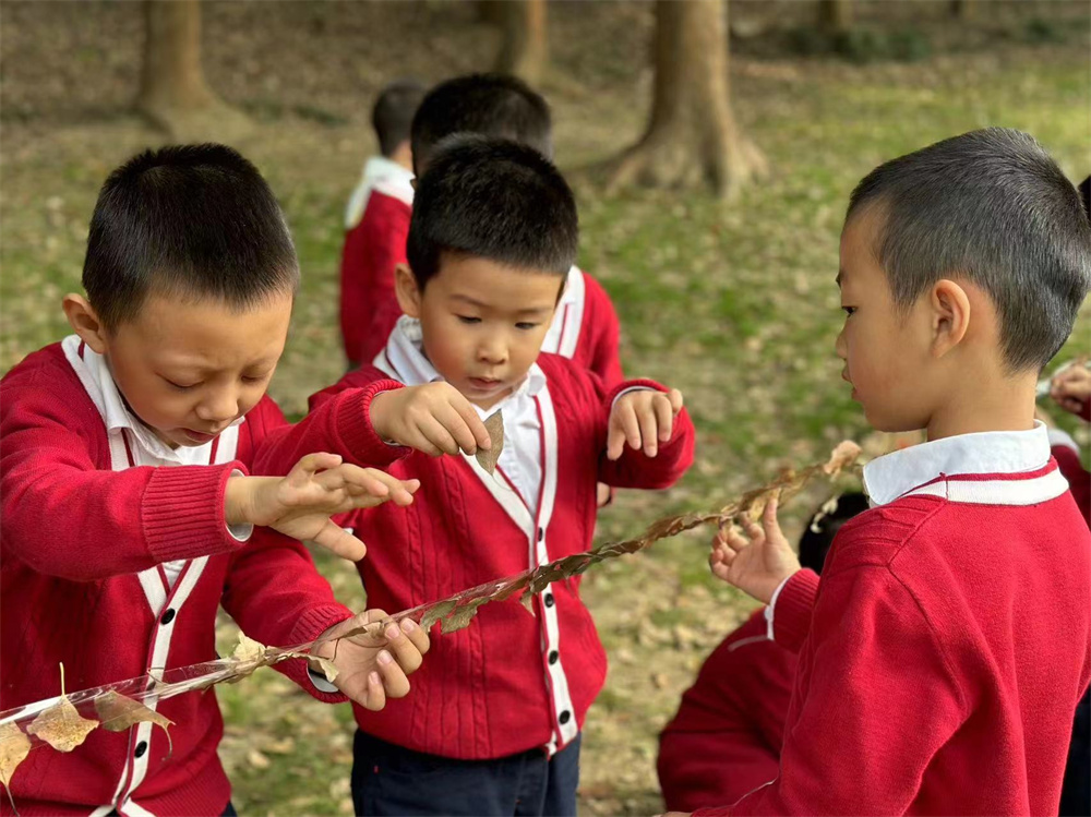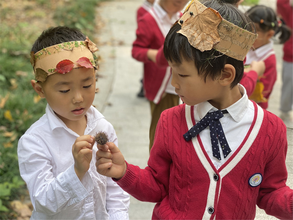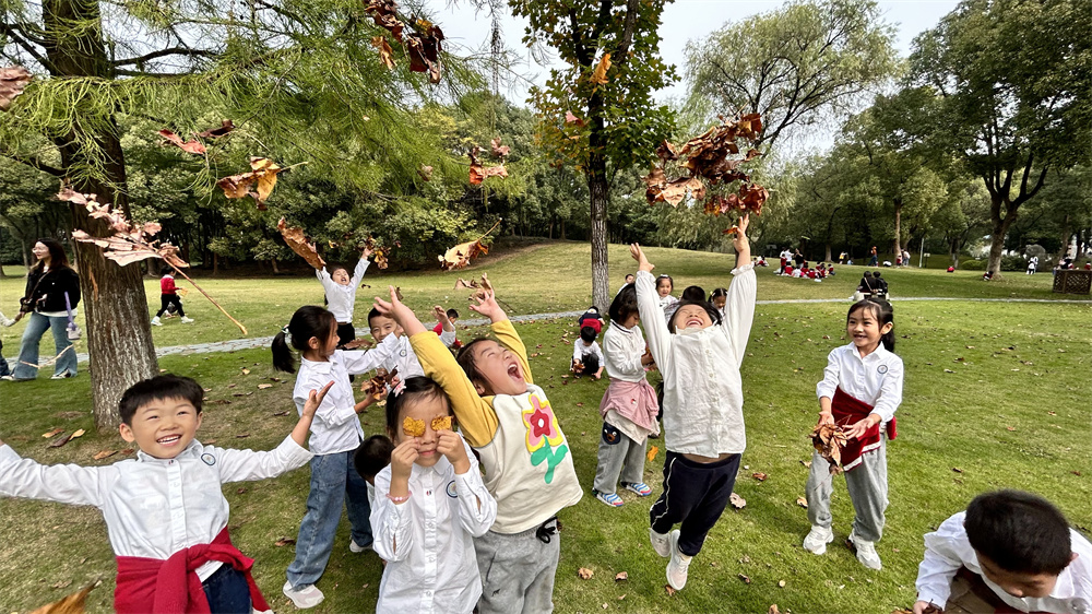 漫步在秋日的风景里,孩子们不仅寻找到了五颜六色的树叶,还和树叶一起玩起了游戏,舞动的树叶成了孩子们手中最好的“玩具”,与树叶共舞,感受大自然的独特魅力。
