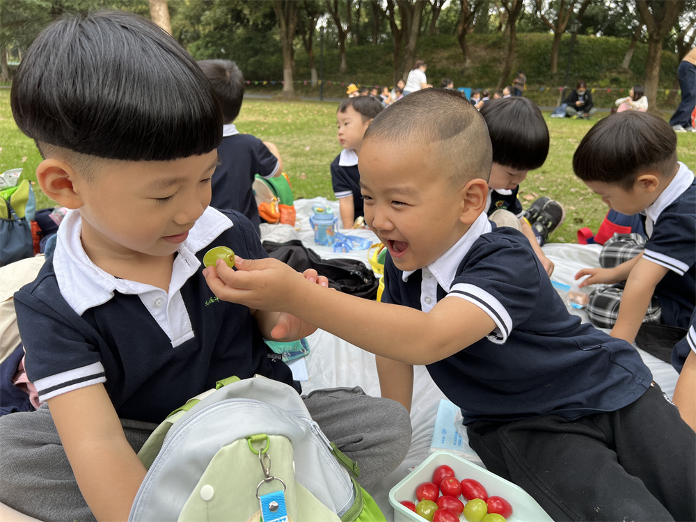 美好的秋日里,美景与美餐同样不能错过。孩子们拿出精心准备的食物与同伴们分享,快乐加倍!