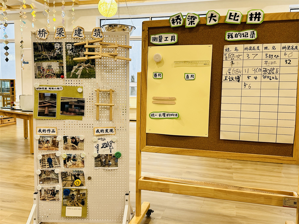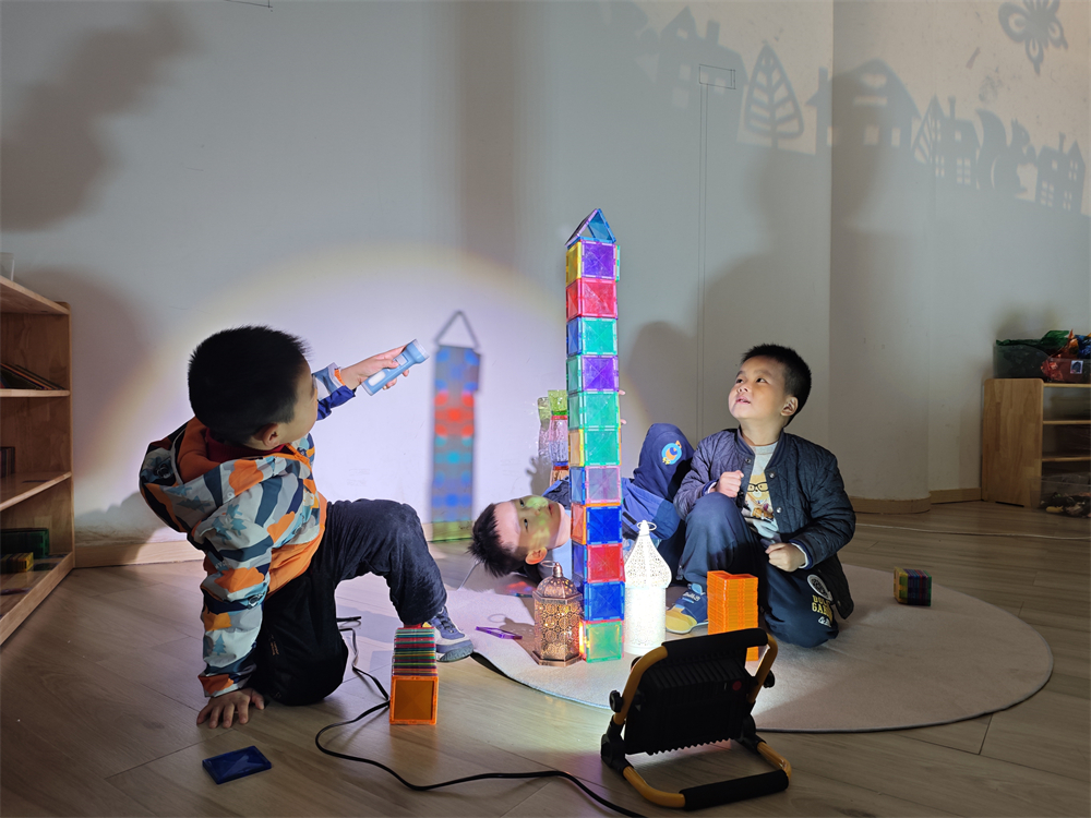 良好的环境是幼儿深度探究的助推器。教师根据前期幼儿活动经验将原本割裂各区域连接,以点、线、面思维整体规划奇趣室。例如将虹桥实验区、机械区、木工区三区打通,幼儿可以立足单虹桥的探究,进一步拓展相关结构知识,并在木工和机械区进行经验的再现,实现思维的链接与进阶。在光影区利用多种光源,整合生活材料和透光材料,帮助幼儿从整体和部分的视角探索光影变化。