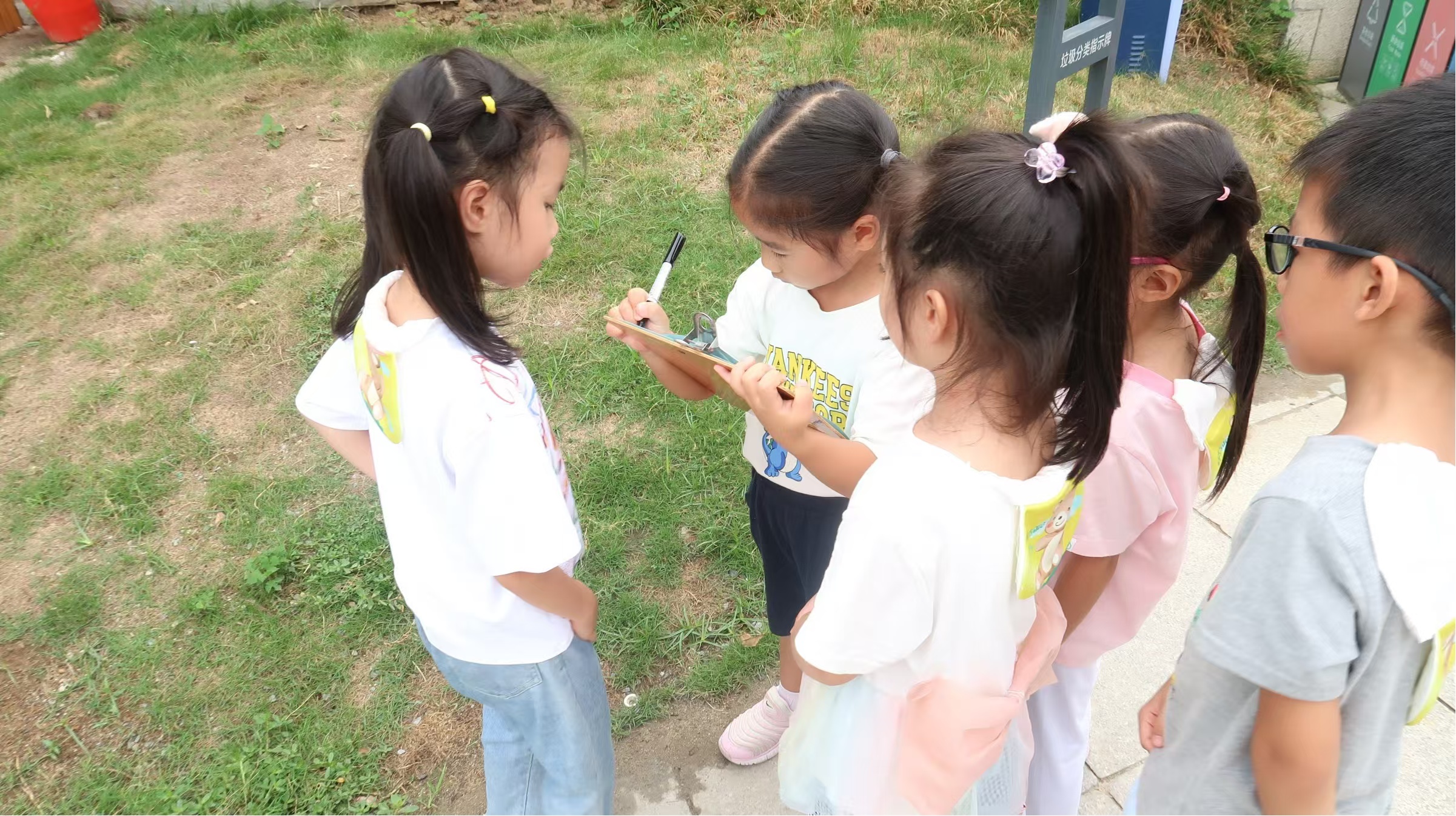 本学期,无锡市机关幼儿园的户外场地进行了改造,大树基地增添了许多新的游戏材料。面对琳琅满目的材料,大班幼儿兴奋之余也有些手足无措,不知道每个地方放了哪些材料。于是教师以此为契机,开展了清点、统计运动材料的课程活动,幼儿化身统计小达人,探索了许多统计的方法与策略。