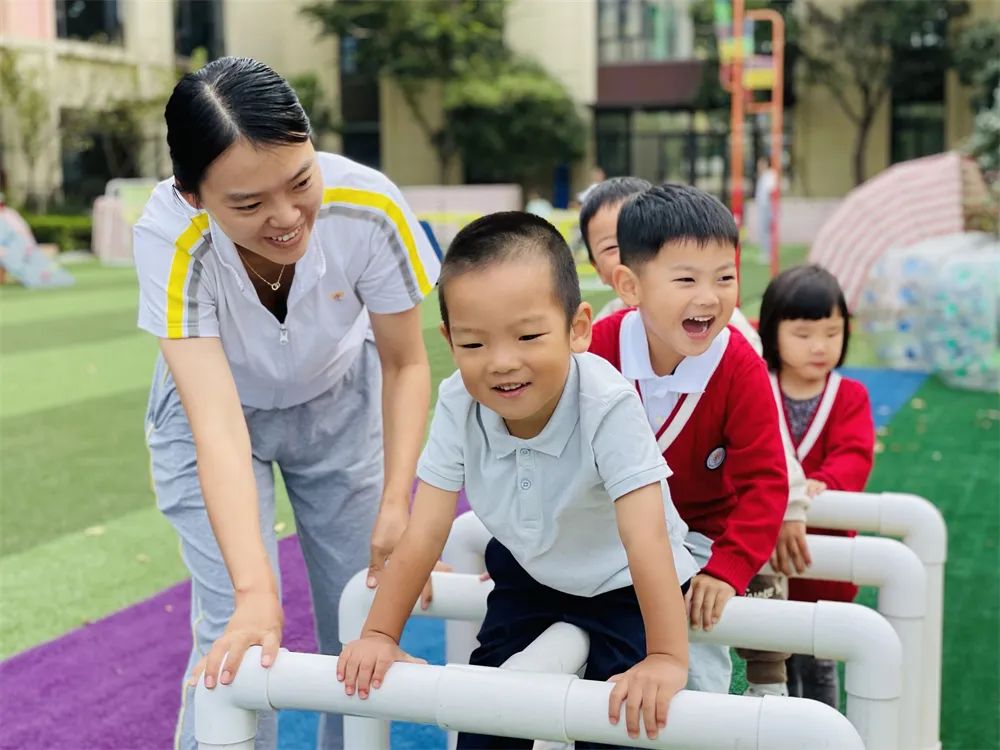 在省优质幼儿园创建过程中,不断优化一日活动安排,落实一日生活皆课程的理念。从幼儿的经验和兴趣出发,以多种形式有效支持幼儿学习与发展。幼儿园充分利用宽敞开阔、丰富多元的沙、水、泥、草地等活动场地,创设自然探索、创意沙水、奇妙音符、快乐运动等户外游戏区域,形成童意盎然的互动性环境,幼儿与丰富多元的操作材料积极互动。室内幼儿活动区域又是另一番天地,童画俱乐部、开心建构站、百变木工坊、梦想故事屋等多个专用活动室一步一景处处体现“同伴学习,助力智慧成长”的办园特色。室内室外动静交替、相得益彰,开放式、互动式的探究环境,不断激发幼儿的探究欲望,富有挑战的环境、丰富的自然资源让幼儿园真正成为孩子们的乐园。