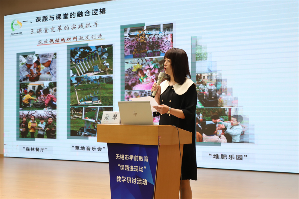 无锡市阳山中心幼儿园张琴、无锡市爱尔实验幼儿园王丽丽、无锡市机关幼儿园沈丹分别以《幼儿“百种表达”的自然情景游戏设计与实施研究》、《涵养审美感受力的传统文化活态传承探索》、《师幼互动评估让学习更精彩》为题,分享了立足于本园资源与实践开展课题研究的过程、创新亮点与成果,呈现了无锡学前教育人不断夯实理论根基,以问题为导向,通过建构、融通、创新研究路径,激活多元主体,不断形成研究共识,取得丰硕成果的新质教科研历程。