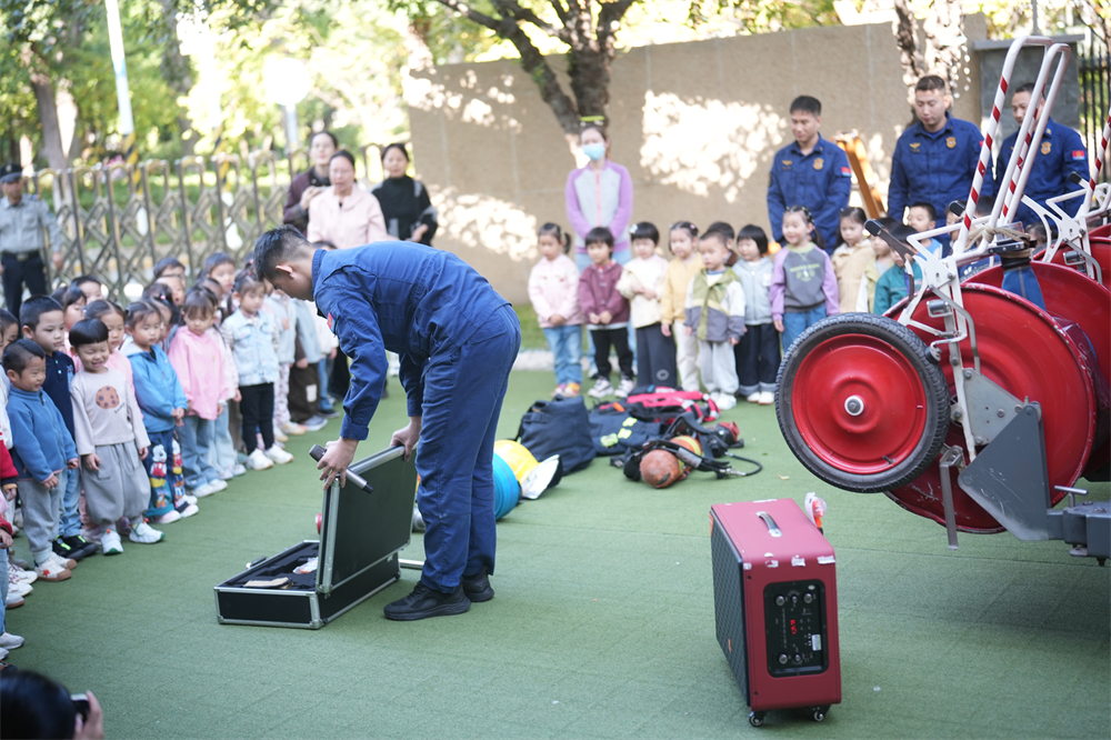 消防员叔叔带来了丰富的装备:鲜红的灭火器、蓝色的水带、结实的消防头盔……孩子们好奇地触摸观察,认真地聆听讲解。操场上,高压水枪喷涌出高高的水柱,划出一道晶莹的弧线,引得孩子们阵阵惊叹。更有小朋友穿上消防服,虽行动略显笨拙,脸上却洋溢着自豪的笑容——那一刻,英雄的种子已在心中悄然萌芽。
