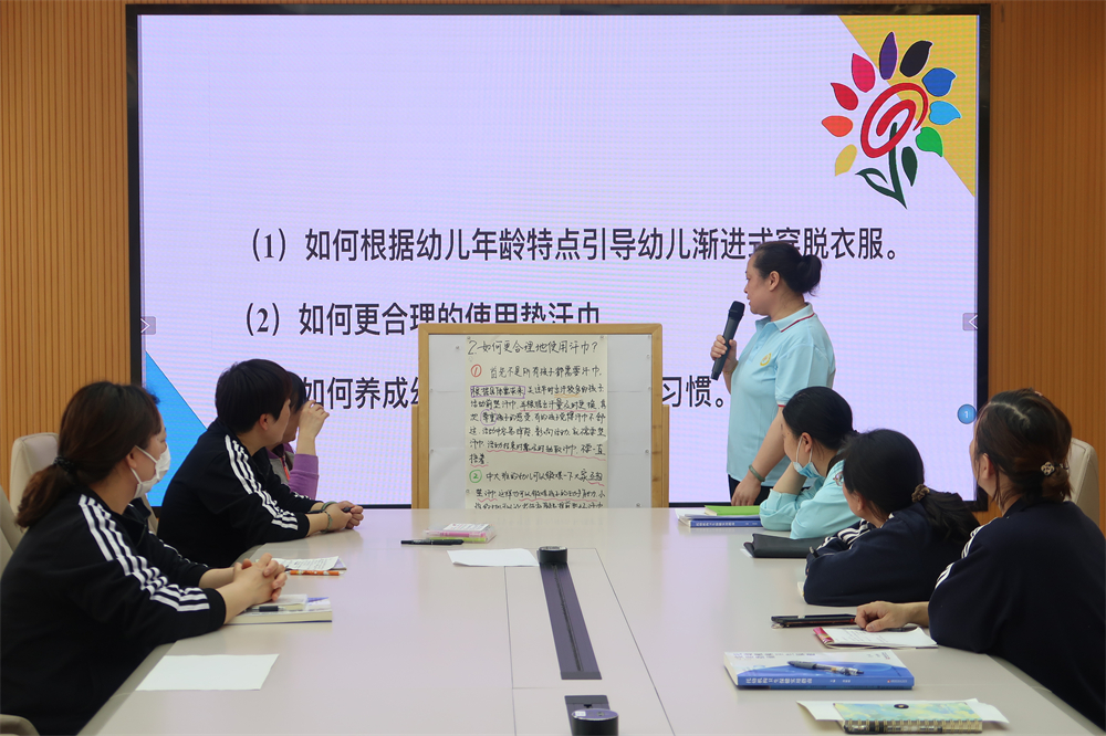 分层带教,精准提升。创新实施“师徒结对”帮扶机制,由骨干保育员与新手结成对子,进行手把手指导与日常陪伴式学习。每月聚焦一个典型保教融合实操问题(如“幼儿垫汗巾的个性化指导策略”“过渡环节自主喝水习惯的有效引导”等)开展专项案例分析与现场教研。这种基于真实问题、聚焦细节的研讨模式,极大地提升了专业技能迁移与解决实际问题的能力。
