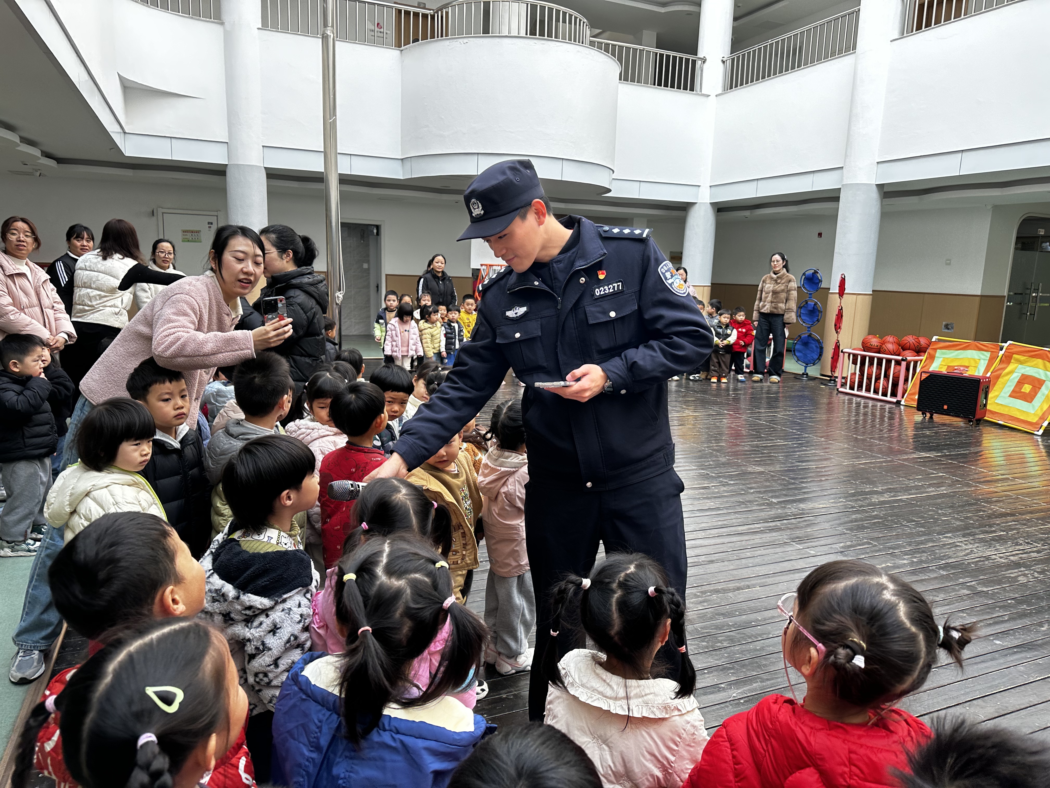 为进一步巩固教育成效,幼儿园特邀辖区民警走进课堂,为孩子们带来专业的安全指导。民警叔叔用通俗易懂、生动形象的语言,结合真实案例,向孩子们讲解如何识别可疑人员、如何在危险中有效寻求帮助,并现场示范正确的求救姿势和报警方法,让安全知识真正走进孩子们的心里。