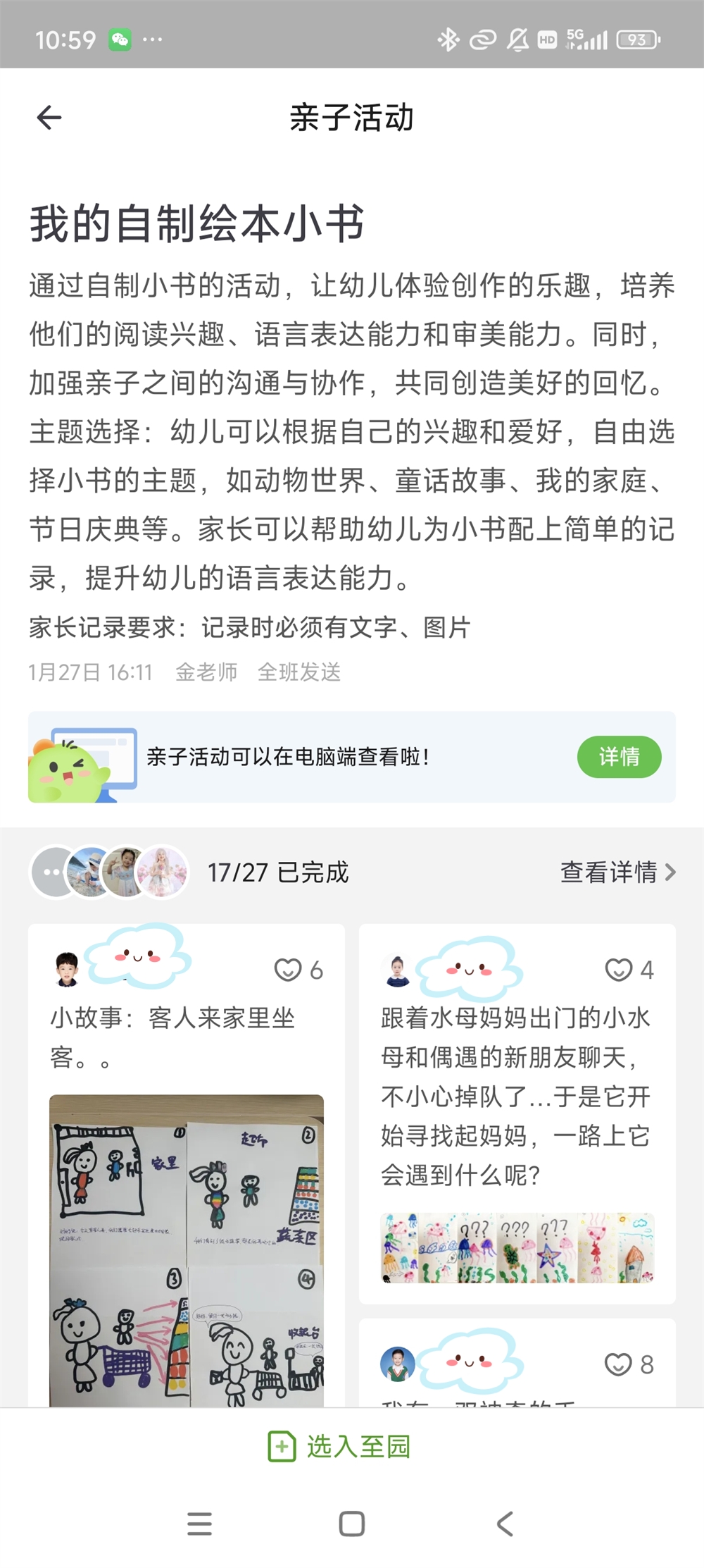 为了促进家庭阅读氛围的营造,让孩子们在趣味中爱上阅读,机幼各班级利用寒假假期组织班级开展丰富多彩的亲子阅读游戏,在家庭中掀起了一股温馨的阅读热潮。“小小复读机”“故事创编”“自制小书”“新年绘本共读”等游戏吸引了众多家庭参与,通过这些充满趣味的互动,家庭阅读氛围愈发浓厚,让阅读成为每个家庭生活中不可或缺的一部分,为孩子的成长注入温暖而持久的力量。