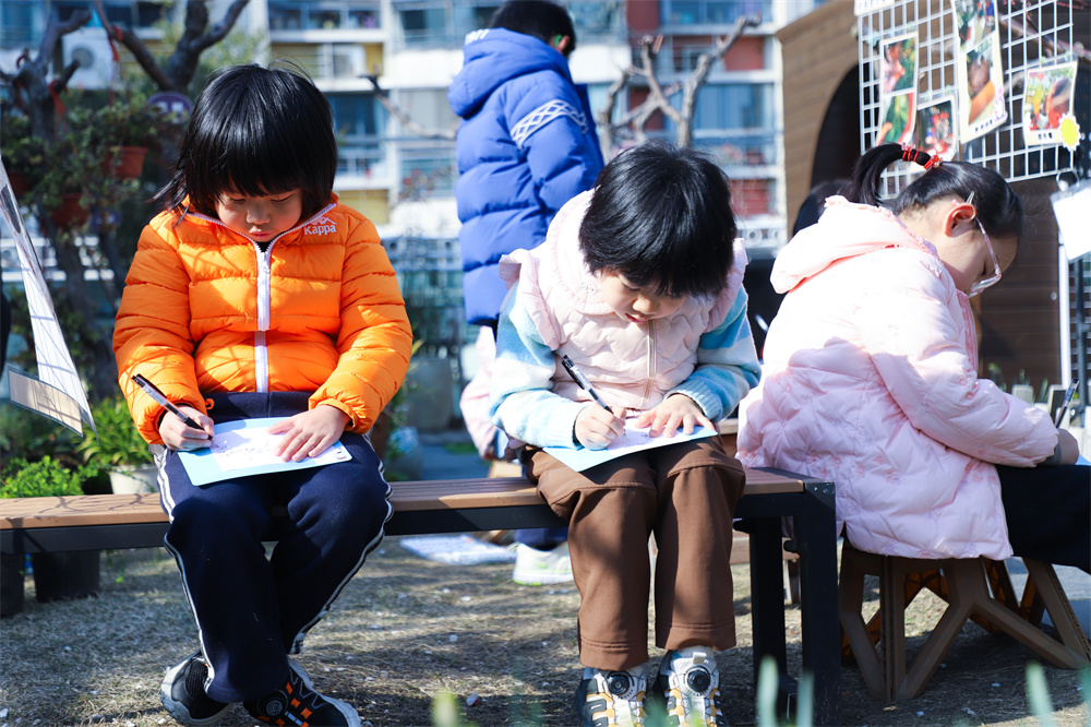 “春天在哪里?”好奇是孩子们探索的动力。他们化身春的使者,探寻着春的足迹:雨林魔法屋里,孩子们围在温控显示屏前,感受土壤温度的变化;百草园迷宫中,孩子们轻捻枝头,细嗅杏花的芳香;四季花草园间,孩子们双目灿灿,追踪蜜蜂的轨迹。原来春天在种植地的田垄间,在放大镜下的微观世界里……孩子们用自己探寻的脚步拉近了与春的距离,真切地感受到了春天的来临。