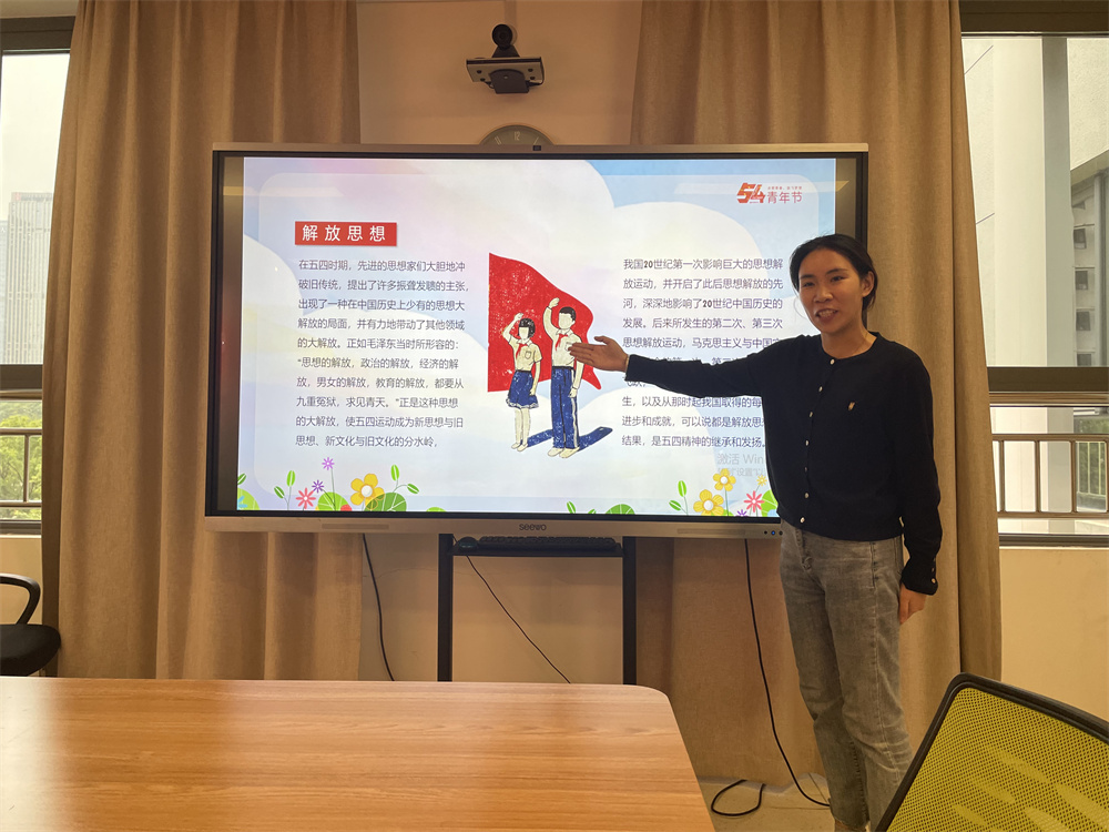 陈鑫莲老师:站在教育岗位上,我愈发懂得:传承五四精神不是复刻历史场景,而是让青春的热血转化为立德树人的持久动能。作为一名团员老师,我将以模范为镜,把崇德向善融入日常教学,用爱心浇灌童心,以言传身教传递正能量,在幼教岗位上践行初心使命。