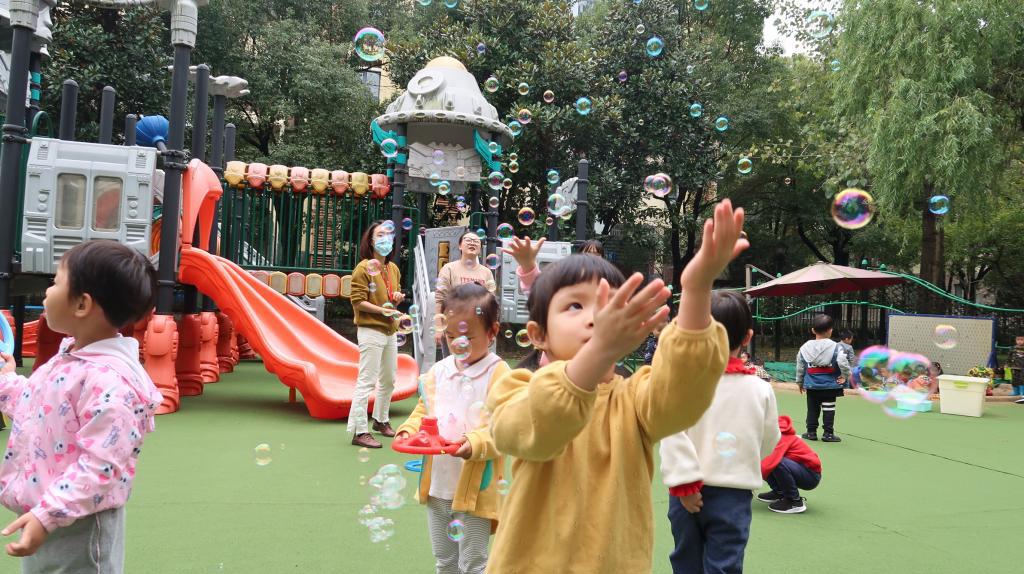 在户外阳光下我们感受到了泡泡不一样的美丽!吹泡泡活动不仅让小朋友获得了愉悦的体验,还培养了幼儿探索问题,发现问题,解决问题的欲望。