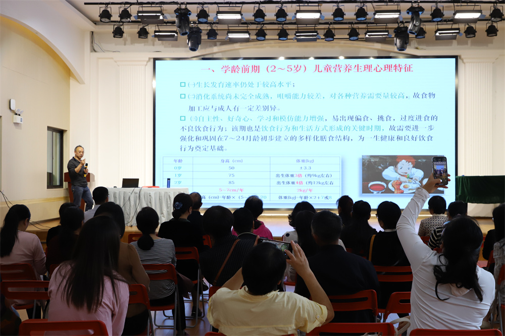 幼儿期是儿童生长发育的重要时期,养成良好的饮食习惯对幼儿的健康成长、身体发育和智力发展至为重要。为了让家长和教职工进一步了解幼儿生长发育规律和特点,提高科学育儿的能力。10月25日下午,无锡市凤凰幼儿园邀请无锡卫生高等职业技术学校贾兆国老师为家长和教职工开展《幼儿营养健康》讲座。