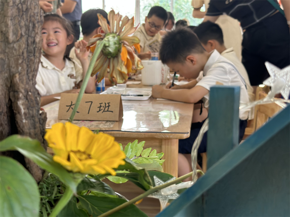 百变坊在孩子和老师的精心布置下变成了时光邮局。在里面不光可以给好朋友写明信片,还能给未来的自己寄信。孩子们铺开信纸,拿起笔,畅所欲言,郑重地将自己宝贵的话语投到了邮箱中。