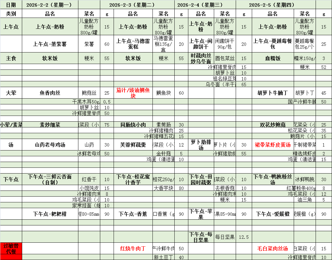 每周膳食