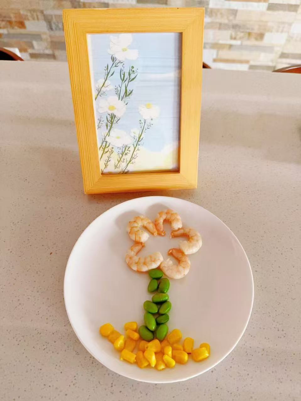 1虾仁放葱姜、淀粉、一勺食用油,腌制十分钟左右,葱姜挑出弃用。