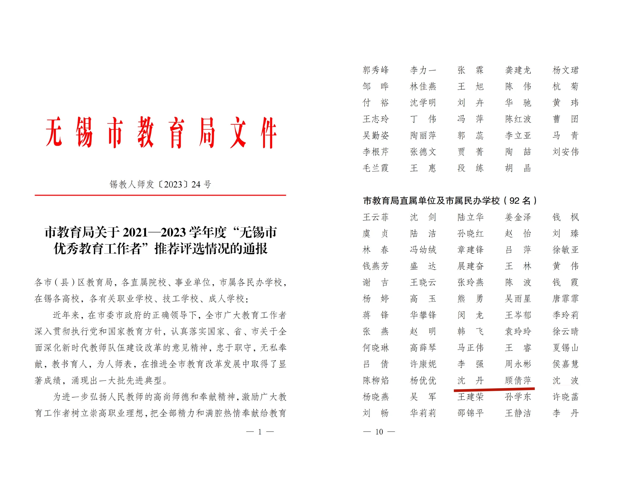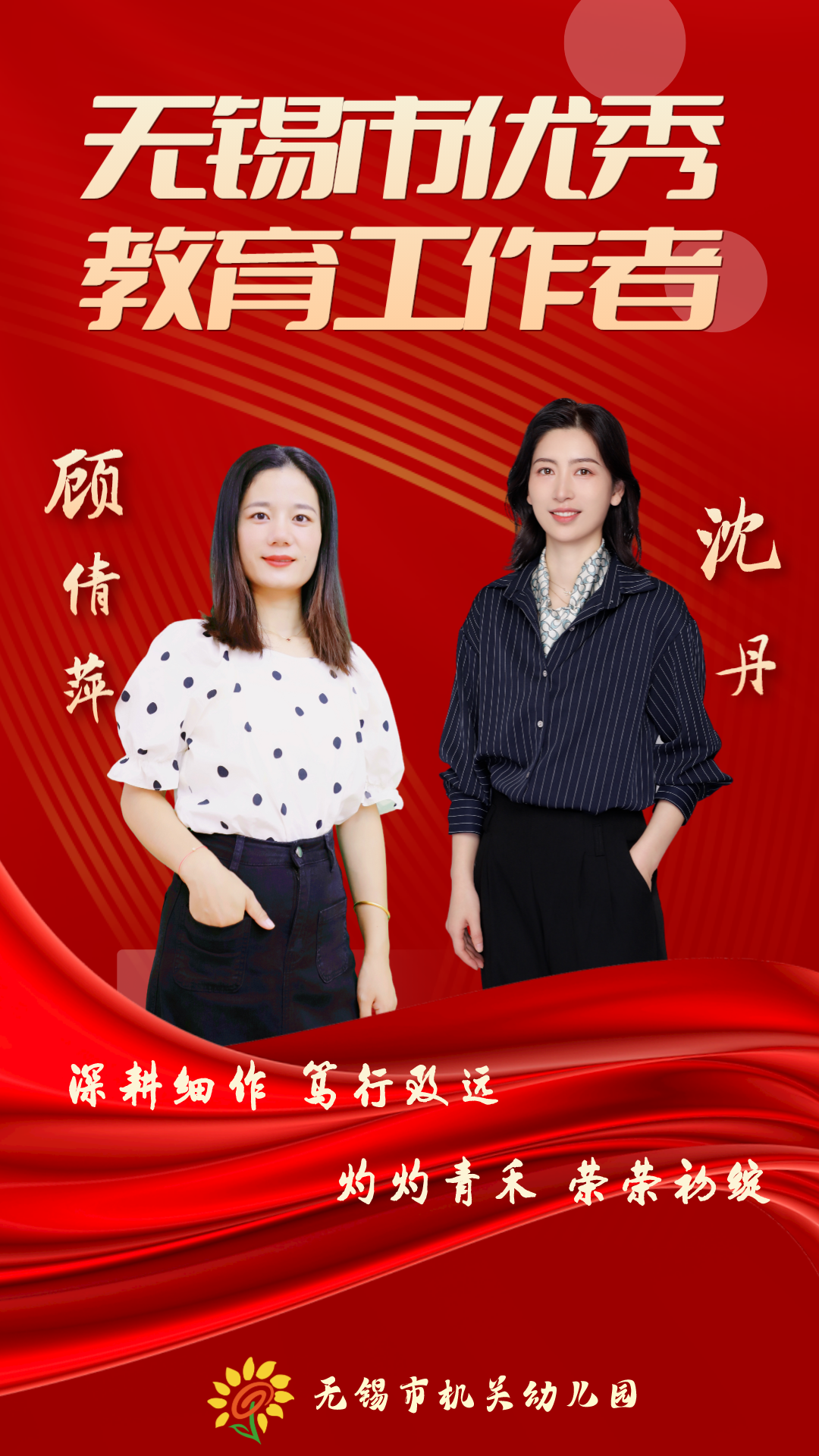 无锡市教育局2021-2023学年度无锡市优秀教育工作者名单揭榜,无锡市机关幼儿园顾倩萍老师和沈丹老师携爱而行。