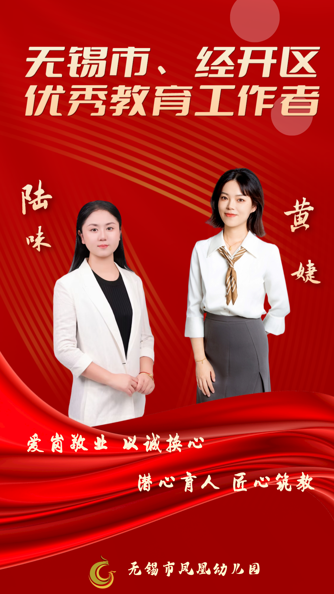 为弘扬人民教师的高尚师德和奉献精神,激励广大教育工作者树立崇高的职业理想,无锡市、经开区教育局开展2021-2023年度“优秀教育工作者”评选,无锡市凤凰幼儿园陆味老师和黄婕老师两位老师上榜。
